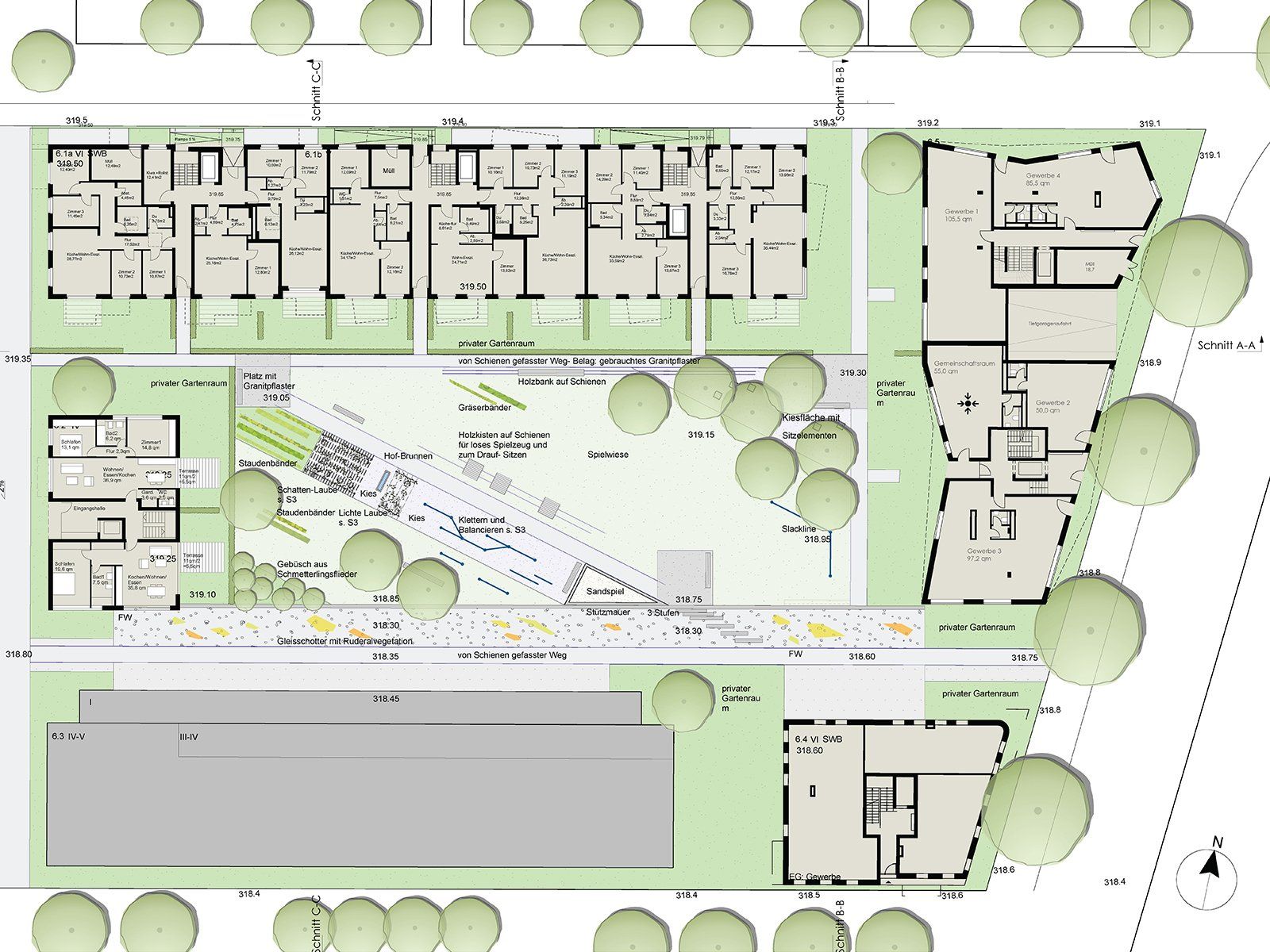 Bebauung Hof 6 Güterbahnhof Tübingen.